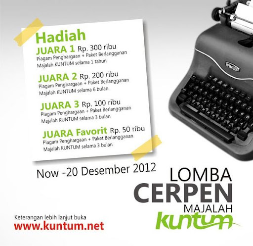 Majalah remaja KUNTUM mengundang segenap pencinta dunia fiksi untuk ikut dalam kompetisi cerpen ini. Adapun ketentuan perlombaan sebagai berikut :